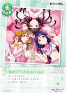 | スキル | 【ライブ中】この《ライブ》に「AZALEA」のメンバー(「果南」「ダイヤ」「花丸」)が3人全員そろって参加しているなら、♪ライブP+1♪し、あなたの《ライブ》に参加するメンバーの【赤】と【緑】と【青】のピースをすべて【オール】にする。 |