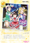 | スキル | 【ライブ参加時】あなたのステージにいる、ライブ衣装が「想いよひとつになれ」の名前が異なるメンバー1人につき、共通スコアが1減る。 |