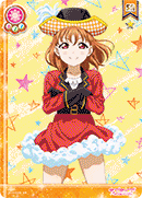| スキル | 【特別練習】「千歌」(あなたの覚醒していない待機中の「千歌」1人を裏向きにしてその上に重ねて《登場》してよい。そうしたら、覚醒済みになり、【覚醒(仮)】が有効になる。)【オール】/【オール】 |