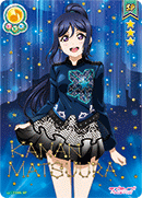 | スキル | 【スタート時】/【登場時】あなたのコレクションから【☆】をちょうど1個持ち、【RUSH】か【LIVE】を持つ「Aqours」のメンバー1人を全員に見せて手札に加えてよい。 |