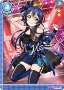 | スキル | 【登場時】カードを1枚引く。 【ライブ参加時】あなたのステージにいるメンバーがすべて「海未」なら、+【赤】【緑】する。 |